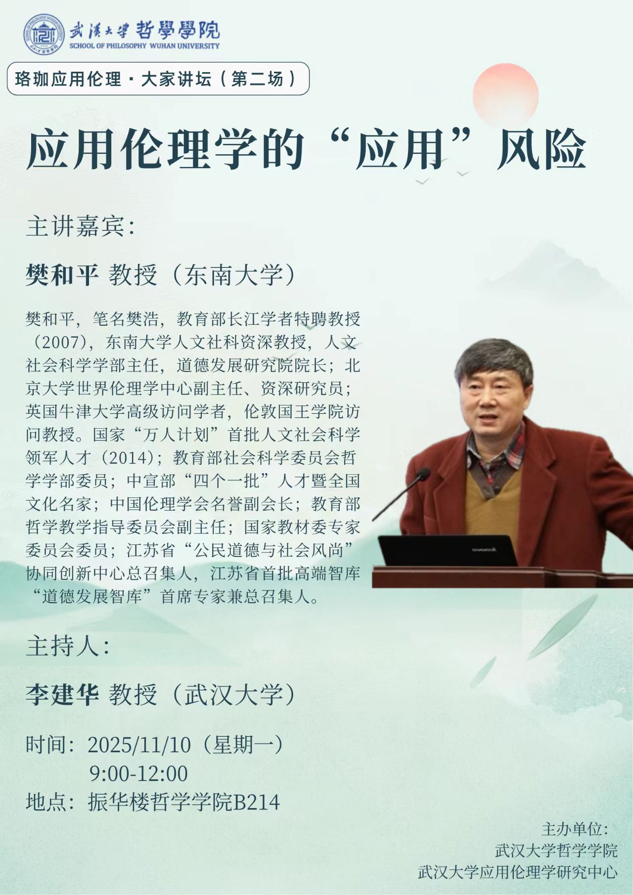 【11月10日】珞珈应用伦理 · 大家讲坛 (第二场) | 樊和平:应用伦理学的”应用“风险