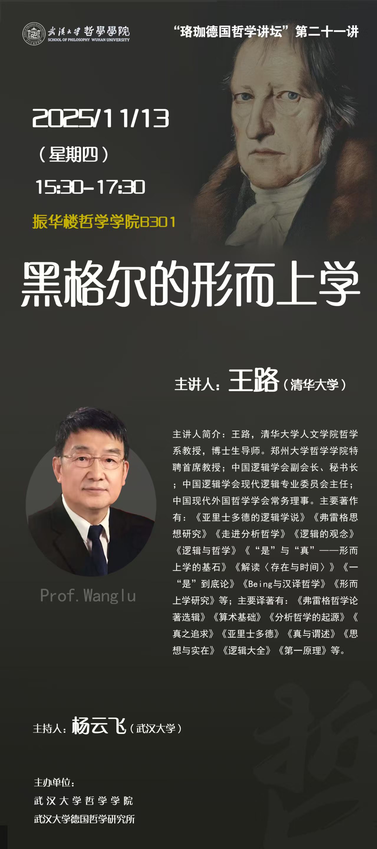 【11月13日】珞珈德国哲学讲坛第21讲 | 王路:黑格尔的形而上学
