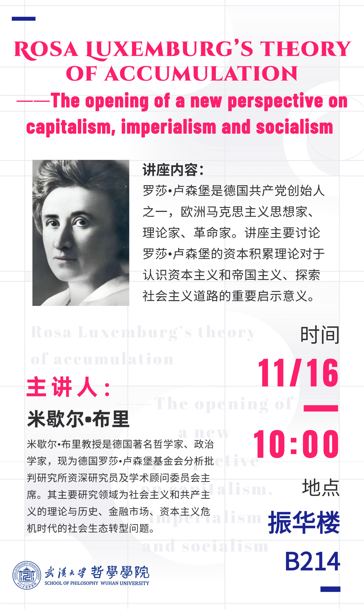 【11月16日】米歇尔·布里:Rosa Luxemburg’s theory of accumulation——The opening of a new perspective on capitalism, imperialism and socialism