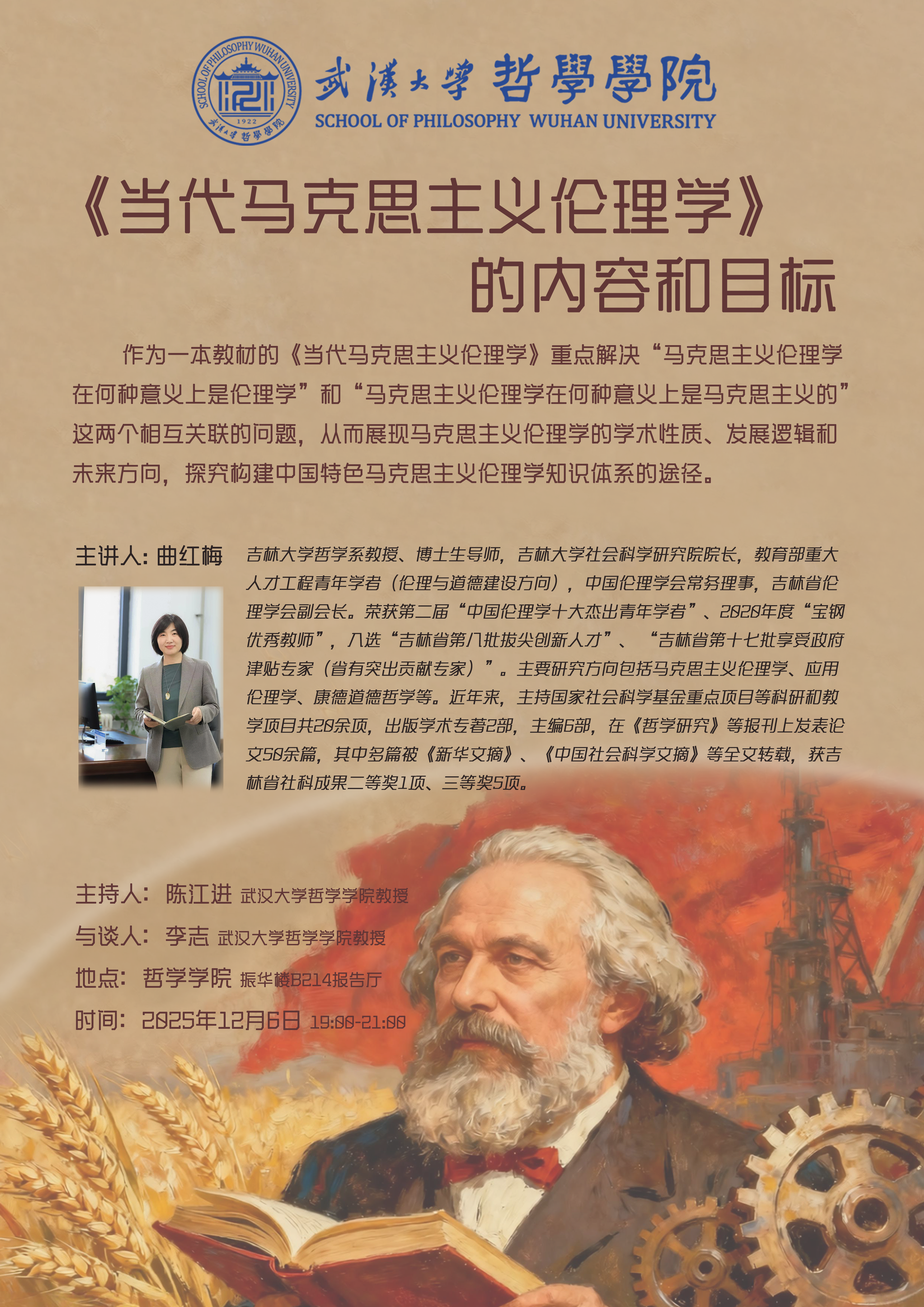 【12月6日】曲红梅:《当代马克思主义伦理学》的内容和目标