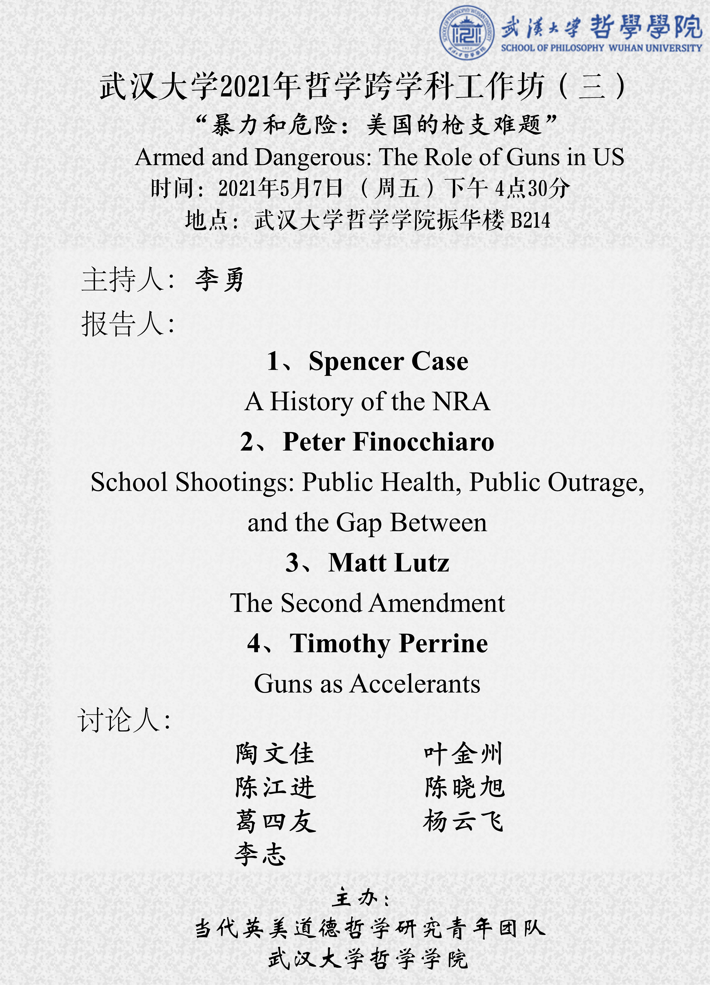 【5月7日】“暴力和危险:美国的枪支难题”——色情导航 2021年哲学跨学科工作坊(三)