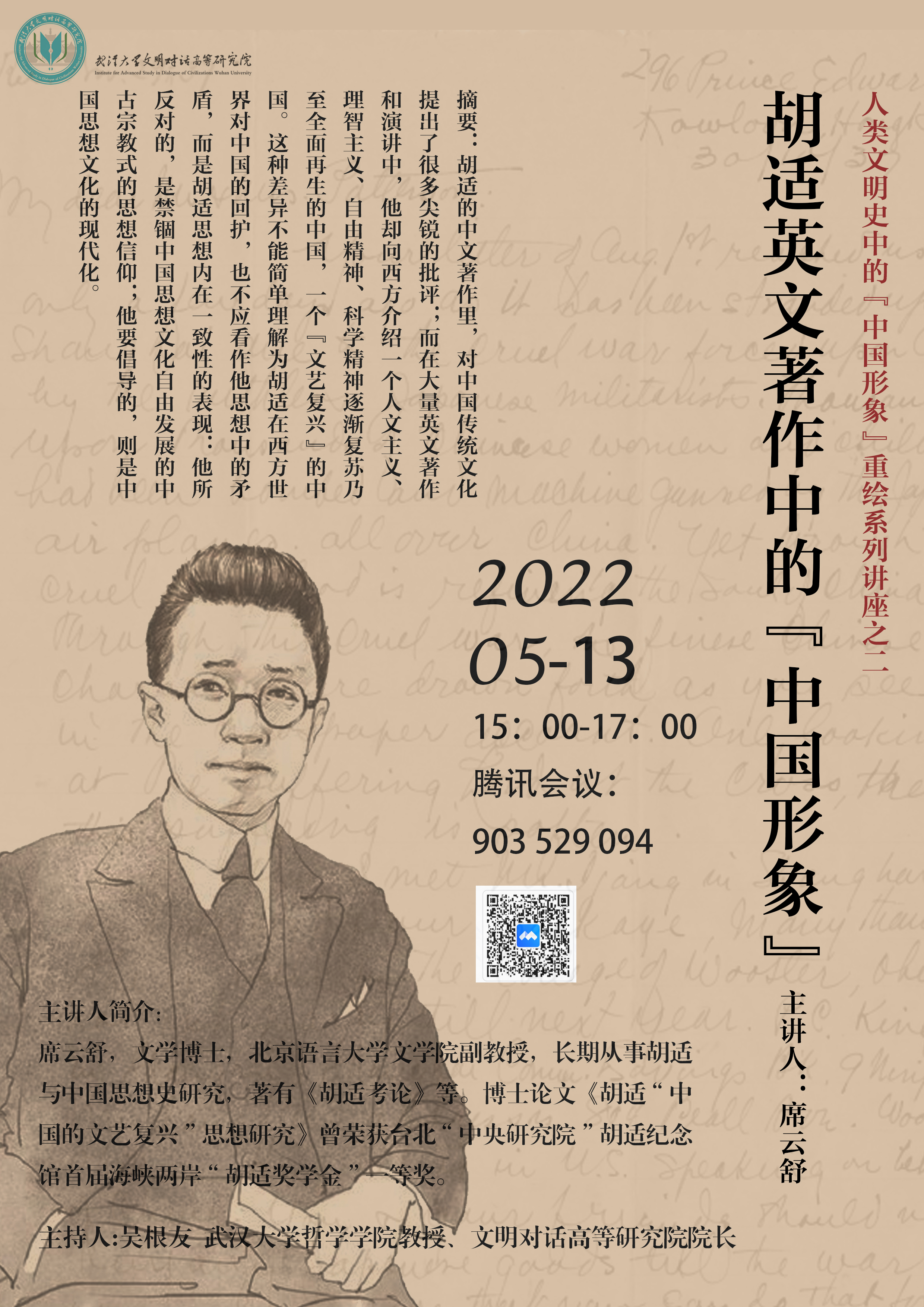 【5月13日】胡适英文著作中的“中国形象”——人类文明史中的“中国形象”重绘系列讲座之二