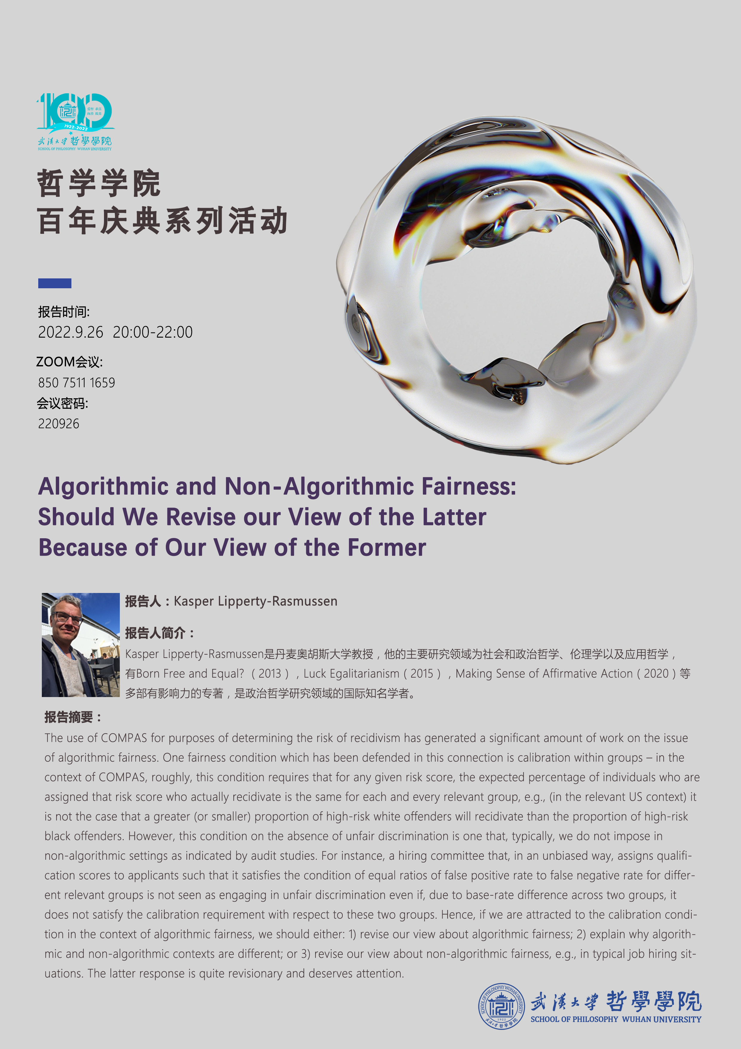 【9月26日】Algorithmic and Non-Algorithmic Fairness: Should We Revise Our View of the Latter Because of Our View of the Former