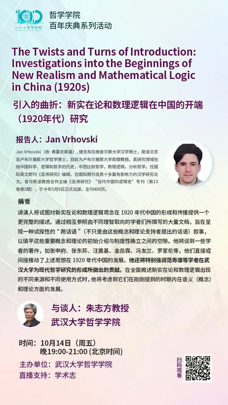 【10月14日】引入的曲折:新实在论和数理逻辑在中国的开端(1920年代)研究