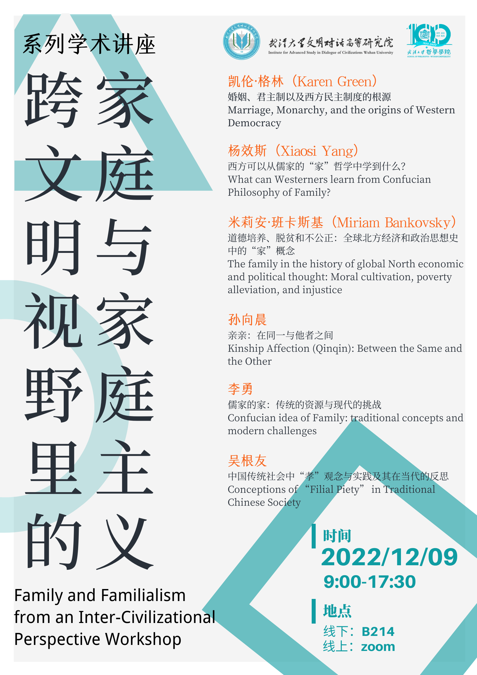 【12月9日】跨文明视野里的家庭与家庭主义系列学术讲座