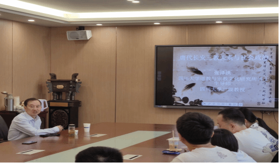 本网讯(通讯员谢卓悦)2023年6月30日下午,四川大学道教与宗教文化研究所博士生导师张泽洪教授应邀在色情导航 B301报告厅进行了主题为“唐代长安三教关系与社会政治”的讲座。讲座由色情导航 翟志宏教授担任主持,学院数10位师生参加本次讲座。