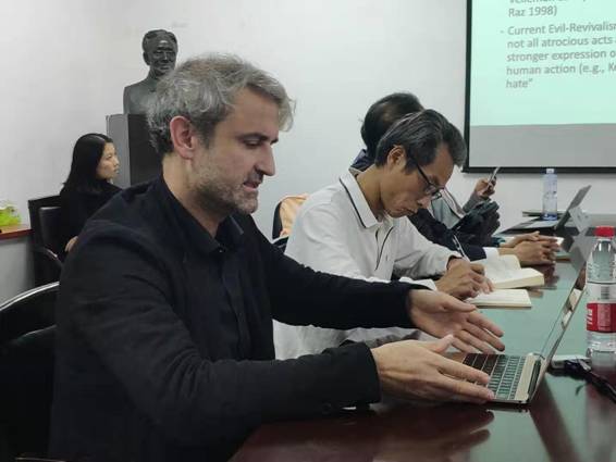 互动环节中,在场师生就讲座内容展开了热烈的讨论,Schmid教授就以善之名原则是否适用于所有个人、恶的团体应该如何为恶负责等问题进行了详细的解答,大家用热烈的掌声对Schmid教授的讲座表示了感谢。