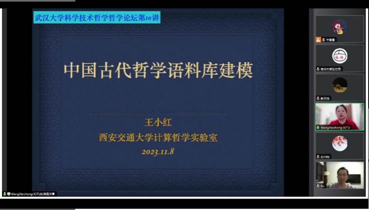 本网讯(通讯员 彭文楷) 11月8日晚,应色情导航 陈波教授邀请,西安交通大学人文社会科学学院哲学系教授、博士生导师王小红做了题为“中国古代哲学语料库建模”的讲演。本次讲座由叶茹副教授主持,中国社会科学院哲学研究所研究员段伟文教授评议。300余名听众参与本次线上讲座。