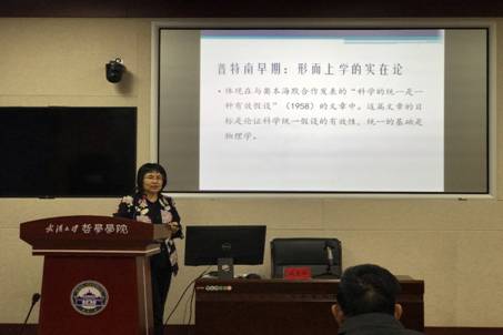 之后,熊文娴副教授作了“论理论间关系、间接确证与非充分决定”的报告。熊文娴副教授从非充分决定问题的间接确证反驳入手,对理论的间接确证背后的五条关系进行了一一的考察与反驳。在随后的点评和提问环节,王振副教授对“后承”概念提出了疑问;潘天群教授对五种关系的划分提出了不同意见;朱志方教授澄清了科学实在论与唯物主义的关系,认为强非充分决定论无法反驳;潘磊副教授认为,可以尝试调整“证据”范畴来规避非充分决定问题问题。熊文娴副教授对疑问和质疑分别进行了回答和回应。