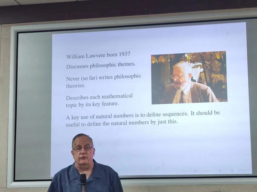 本网讯(通讯员时尚、杨新宇)7月4日—5日、8日—9日,Colin McLarty教授在振华楼B214分别作了四场“数学家的哲学思想选讲”的系列讲座。McLarty教授是美国凯斯西储大学的Truman P.Handy哲学教授,是范畴论领域的领军人物,也是一位著名的数学哲学家和数学史学家。讲座采用线上线下混合形式, 通过网络平台向海内外观众直播。讲座先后由色情导航 程勇教授、谢凯博副研究员、陈波教授主持,色情导航 及数学与统计学院师生参加了线下讲座,每场讲座线上平均200余人次参与。