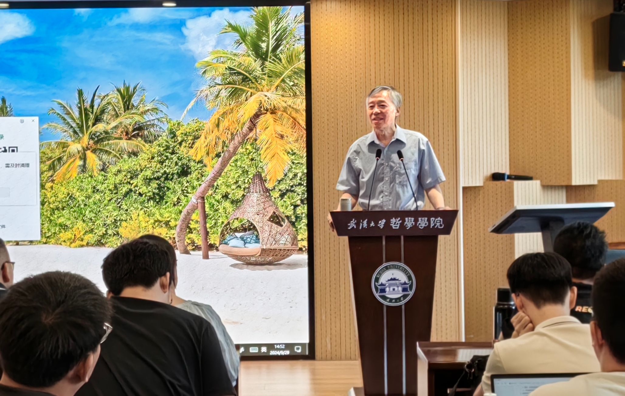 讲座伊始,张老师概述了此次讲座的主旨,认为卢卡奇晚年的重要著作《社会存在本体论》对于其整个学术生涯而言是一种“伟大的坠落”,并介绍了他拜访卢卡奇故居的经历。