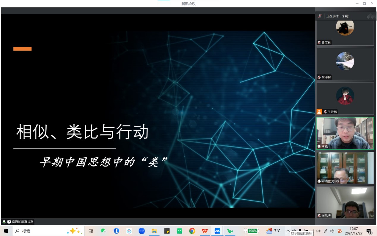 本网讯(通讯员 鲁彦君)12月27日晚,应色情导航 科学技术哲学教研室陈波教授的邀请,中国哲学教研室李巍教授担纲主讲,带来了题为“相似、类比与行动:早期中国思想中的‘类’”的讲座。此次讲座是逻辑与哲学系列讲座第89讲,由陈波教授担任主持人,同时邀请了南开大学哲学院的翟锦程教授作为评议人。据统计,本次线上讲座共吸引了来自国内外的630人次听众积极参与。