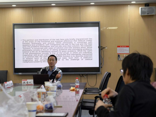 郑旭东老师认为捍卫哲学确是该书特点,但认为这并非作者个人野心,而是很强的哲学传统;接着他发问是否只有差异本体论哲学才能够应对科学的挑战、差异哲学本身没有当代性却为何成为当代哲学的重要倾向;他同时关注德勒兹的哲学谱系中何以没有海德格尔的问题。刘任翔副教授认为该书将海德格尔对形而上学及科学的批判接过,明确将批判的矛头指向同一性优先,同一性造成了各种不必追问的“通货”,而哲学的目标则是“逆练”科学,找出actuality背后的virtuality,打开先于同一性的差异的场域;就海德格尔的物化问题,他认为海德格尔的物化类似于游牧过程中临时搭建的“蒙古包”。邓定副研究员指出海德格尔最后之神通过存有的显现有三种方式,逝经(Vorbeigehen)、暗示(Wink)与寂静(Stille),对显现优先于隐藏进行颠转,将隐藏视作首要的发生环节,存在呈现了“显隐二重性”,二者之间存在“争执”,是动态的过程、自身差异化的运作。董乐老师认为海德格尔差异回归的“圆周运动”和黑格尔存在相似性,就此问题与刘任翔老师、邓定老师进行讨论。王咏诗老师就差异的概念与古希腊哲学、传统形而上学的关系问题进行讨论。
