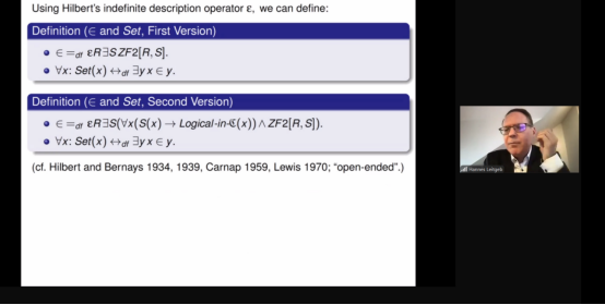 在评论环节,McLarty教授首先感谢了Leitgeb教授带来的内容精彩而丰富的讲座。McLarty教授随后提出了这样一个问题:集合论一致性的认识论地位是什么?McLarty教授对数学家都预设了这一信念表示怀疑。 Leitgeb教授回应道,他认为可以合理地说一般的数学家预设了集合论的可靠性,即使对于集合论学家,他们也有理由相信集合论是真的,Leigeb教授引用了Hrbacek和Jech的集合论经典教材中关于强不可达基数存在的直觉论证来说明这一点。McLarty教授进一步追问道,连续统假设是否也可以说有类似的知识论地位?Leitgeb教授认为答案是肯定的,尽管二阶公理集合论不能证明连续统假设,但是连续统假设仍然是分析命题,Leitgeb教授同时指出卡尔纳普本人也有类似的看法。此外,线上的其他观众就逻辑框架的相对优越性等问题和Leitgeb教授展开了讨论。最后,程勇教授感谢Leitgeb教授带来的精彩讲座,本场讲座圆满结束。