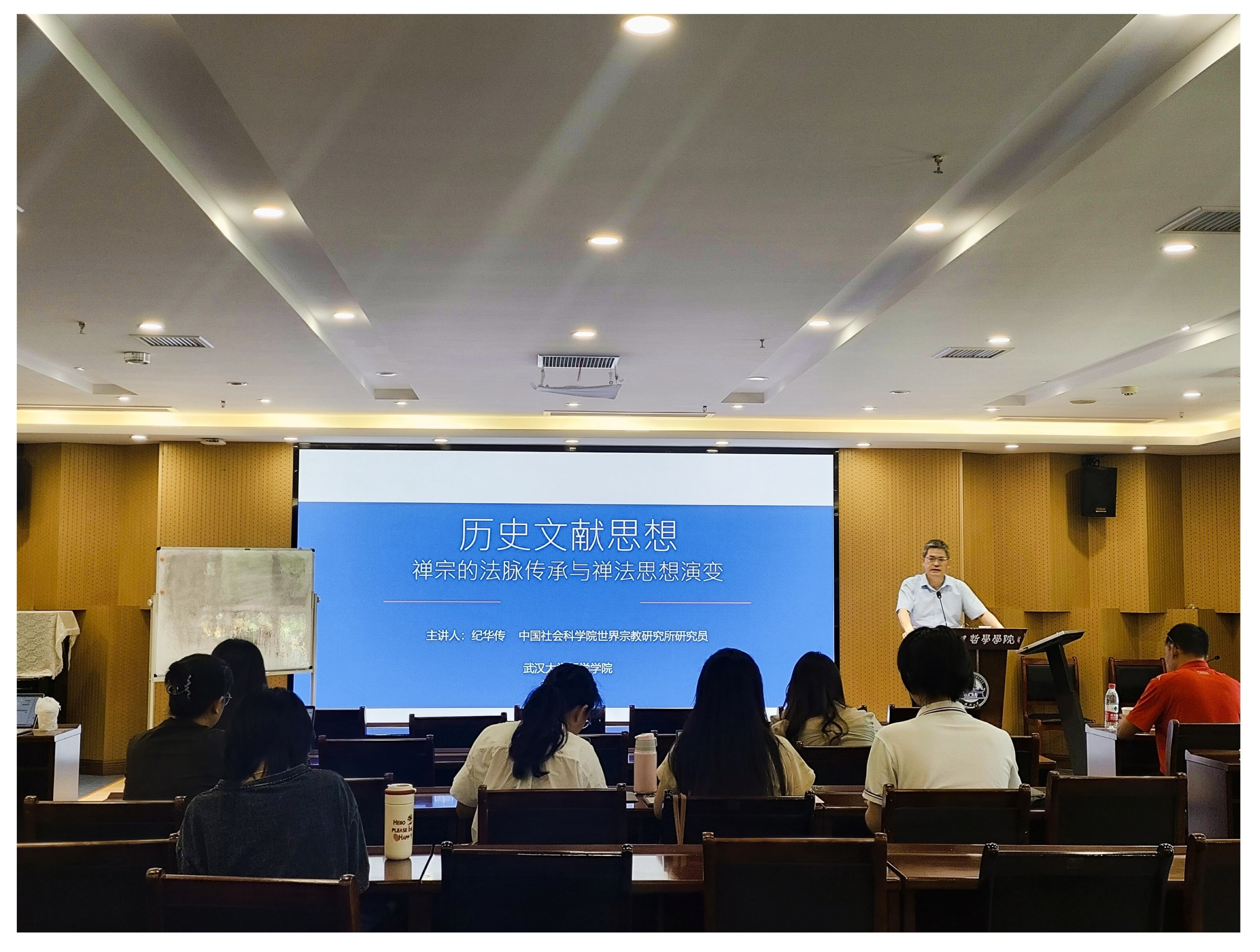 本网讯(通讯员刘佳源)5月30日上午,中国社会科学院世界宗教研究所研究员纪华传在色情导航 B107报告厅作题为“历史·文献·思想——禅宗的法脉传承与禅法思想演变”的专题讲座。讲座由色情导航 国学院院长孙劲松教授主持,色情导航 黄燕强副教授等30余位院内外师生参与了本次讲座。