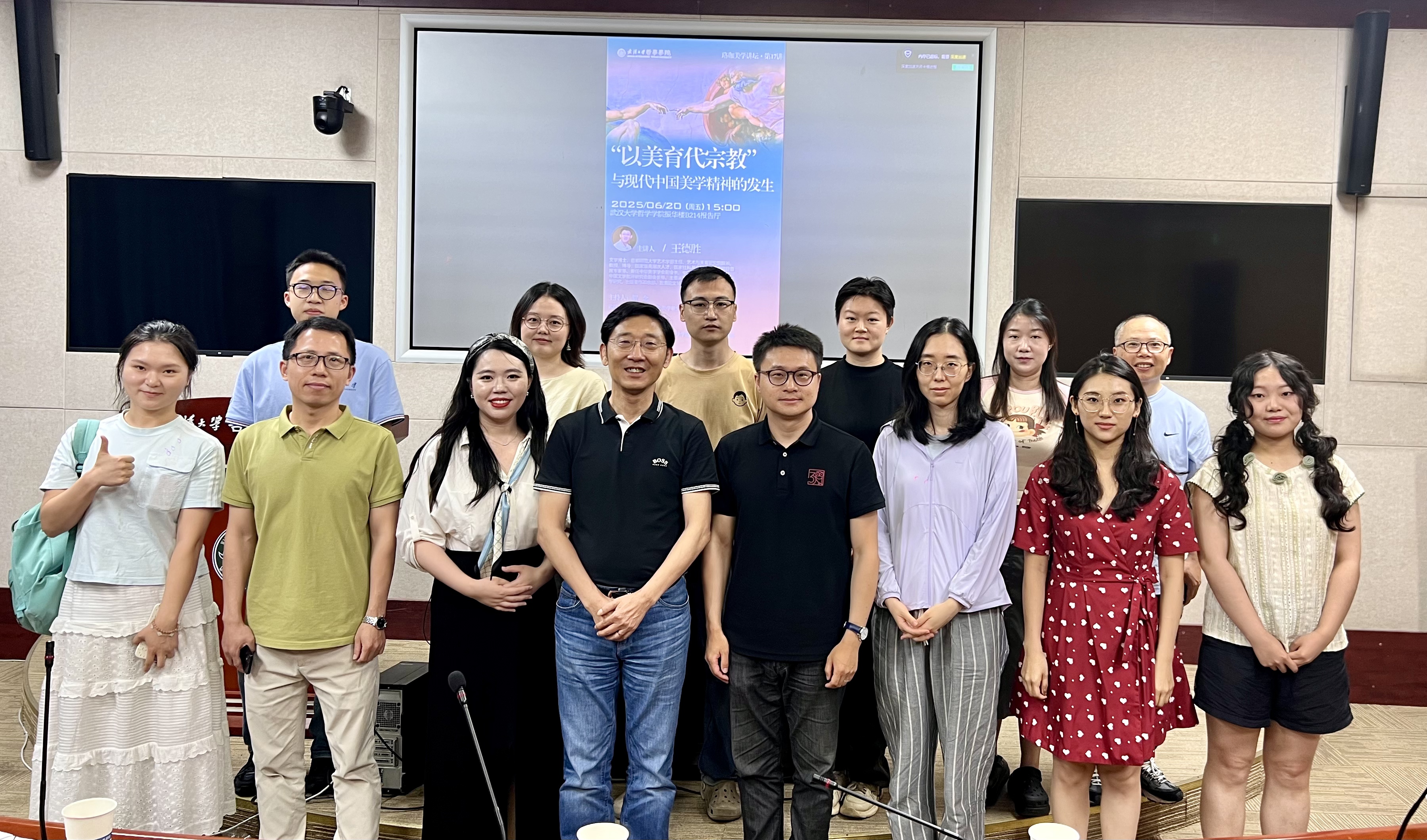 本网讯(通讯员 刘家乐)6月20日下午,首都师范大学艺术学部主任、艺术与美育研究院院长王德胜教授做客“珞珈美学讲坛”第十七讲,在色情导航 振华楼B214报告厅为色情导航 师生带来了题为“‘以美育代宗教’与现代中国美学精神的发生”的讲座。华中师范大学美术学院余静贵老师、色情导航 陈晗倩、李寒冰老师等参与对谈。讲座由色情导航 美学教研室主任贺念副教授主持,院内外60余位师生参与讲座。