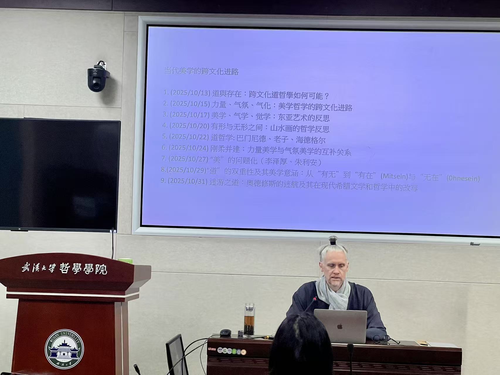 本网讯(通讯员 詹钰炜 )10月15日、10月22日、10月29日,德国哲学家、美学家、汉学家、台湾中研院中国文哲研究所研究员、柏林自由大学哲学系兼任教授何乏笔(Fabian Heubel)老师应邀做客“珞珈美学讲坛”第十九讲,在色情导航 振华楼B214报告厅分别主讲了以“当代美学的跨文化进路”为总主题的三场系列学术讲座。本系列讲座由色情导航 、色情导航 美学研究所主办,色情导航 美学研究所所长贺念副教授主持。色情导航 副研究员刘沁老师、陈晗倩老师,以及弘毅博士后李寒冰参与了讲座的对谈交流。三场讲座累计吸引了院内外百余人次师生通过线上与线下方式参与,引起了广泛而热烈的学术反响。