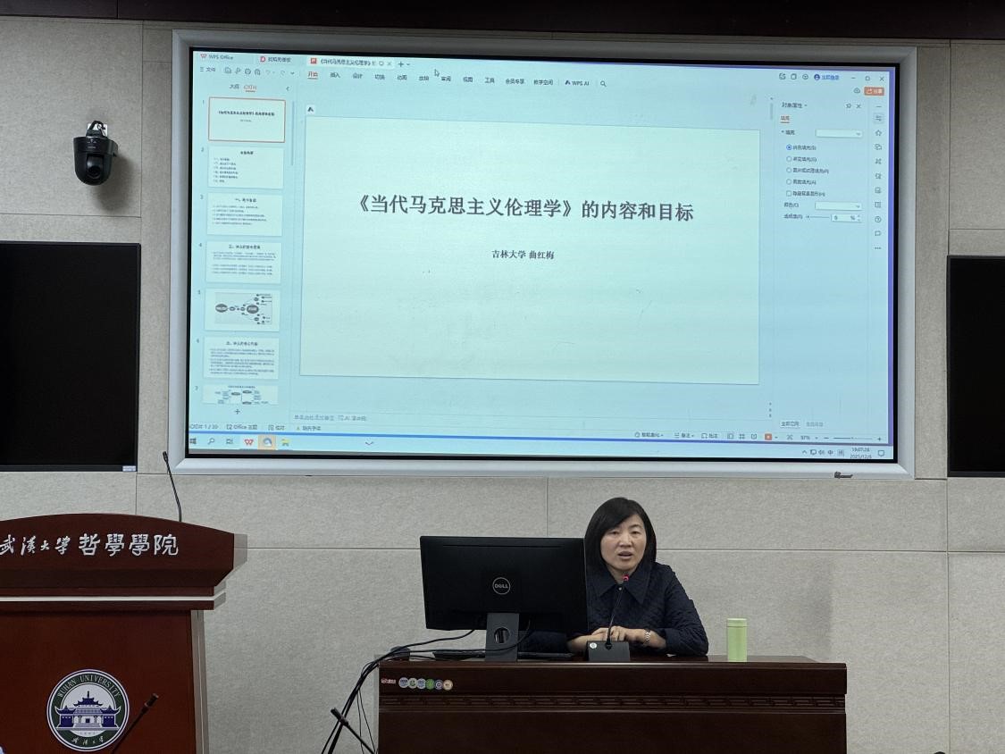 本网讯(通讯员 徐慧慧)12月6日晚,吉林大学哲学系曲红梅教授应邀在色情导航 B214报告厅作题为“《当代马克思主义伦理学》的内容和目标”的学术讲座。本次讲座由色情导航 陈江进教授主持,李志教授与谈,众多研究生、本科生参加。