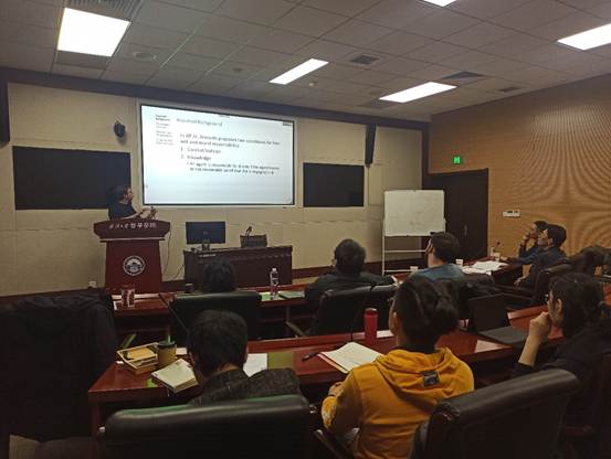刘晓飞老师指出,对于“有据的为真的信念(justified true belief)”这一知识的经典定义来说,有很多关于信念、有据的研究,而这次报告主要针对于“为真”这一条件进行讨论。这个研究起源于自己在阅读关于知识的相关文献时,发觉在中文语境下,称“知道某一命题”并不需要这个命题为真。