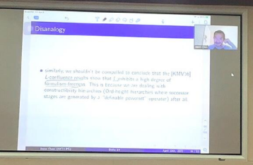 加州大学欧文分校的陈泽晟为大家带来了题为Is L a formalism-free characterization of definability的线上报告。在报告中,他介绍了Kennedy、Magidor、Vaeaenaenen关于哥德尔可构造宇宙L的收敛定理,以及Kennedy借此提出的“可定义性上的丘奇图灵论题”。他指出Kennedy的论证依赖于一个错误的类比,因为该类比的正确性将导致“L是否是免于形式的”这一问题变得平凡。