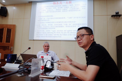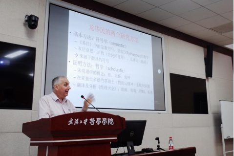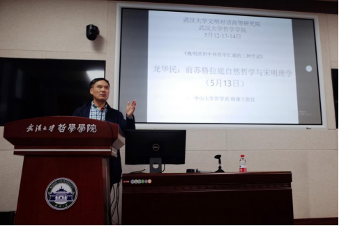 第二场讲座于2021年5月13日下午在色情导航 B214会议室进行,题为“龙华民:前苏格拉底自然哲学与宋明理学”,由色情导航 文明对话高等研究院院长吴根友教授担任讲座主持人。