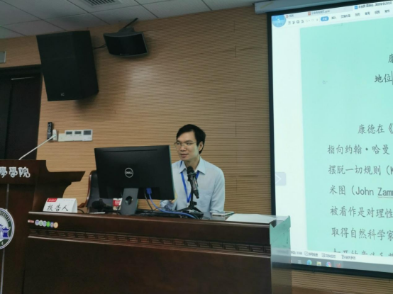 “康德的认识论”主题共有9场报告。安徽大学张广副教授在论文《康德的纯粹理性的历史:理性“完满”的寻求》中认为《纯粹理性批判》中的“纯粹理性的历史”一章不仅呈现了《纯批》的“要素论”与“方法论”的静态结构分析,也明示了《纯批》为人类理性的未来开创了一个“完全满足”,是一种动态的批判哲学的历史定位。上海学者陈虎平的《先验自我与多层还原》认为康德的先验自我概念依旧是近代形而上学思维的逻辑剩余,是一个不必要的多余概念,可以用多层还原的程序性思维予以取代。西北师范大学大学胡好副教授在报告《再论康德对本体论证明的系统批判》中提到康德从可能性、现实性和必然性三类模态切入,分别反驳了上帝的可能存在、现实存在和必然存在,从而对本体论证明进行了系统性批判。华中科技大学、李扬讲师在报告《论康德对本体论证明的反驳》中提出康德关于Sein的肯定意义有四种含义,分别是逻辑上的系词,认识论上将杂多结合为对象的功能,逻辑上对主词的设定,以及认识论上把对象设定在与我的概念的关系,据此来解释康德对本体论证明的反驳。南京师范大学居俊讲师的论文《康德灵魂不朽问题域中的心物关系探究》认为康德既批判唯理论的灵魂不朽证明,也拒斥经验论与唯物论对灵魂不朽的否证,从而为先验“我思”保留了“我实存”的可能性,也阐明了从实践维度来考察“我实存”的新路径。清华大学罗喜助理研究员的报告《论意志自由与决定论的相容性——基于康德“第三个二律背反”的阐释》依据“两种属性说”的解读,认为人同时具有经验性和理知的品格,分别体现了人的两种不同的存在论属性,并且理知的品格在存在论上为经验性品格奠基,自然与自由因此得以相容。中国政法大学宋博讲师的报告《重思康德的“认识”概念》提出康德的“认识”概念有两种含义,一种以对象指称为中心,可视为“认识”的逻辑学概念,另一种以对象的构成为中心,可其为“认识”的形而上学概念。南昌大学毛九星讲师的论文《对康德“我思”概念的一种现象学解读》认为康德的“我思”概念包含三个环节,在现象学看来就是对象意识、自身意识和自我意识,可以完整地表达为“我-(有意识地)思-对象”。从先验哲学的角度来看,对象意识与自身意识比“纯粹自我”要重要得多。西北农林科技大学唐树生讲师的报告《康德是功能主义者吗?》认为康德的心灵理论与功能主义有本质不同,康德认为心灵具有先验结构,功能主义无法对其进行论证,而功能主义以因果关系为前提,康德认为因果关系是心灵认知的产物。