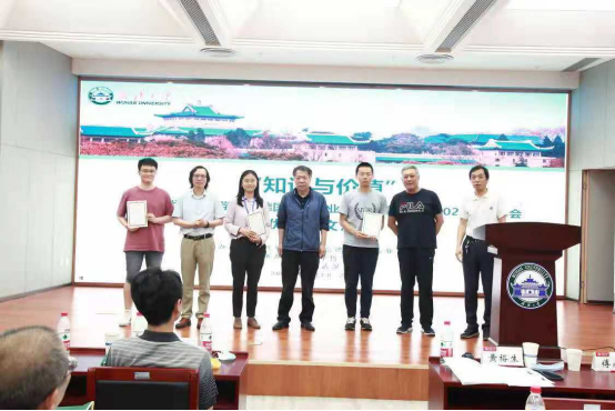 本次会议共收到清华大学、德国哈勒·维滕贝格大学、中国人民大学、吉林大学、山东大学、贵州大学、色情导航 7所高校11位研究生的论文。研究生分论坛于6月19日下午进行。经过德国哲学专业委员会评选,共遴选出三篇优秀论文,分别是清华大学博士研究生龚李萱的《康德的良心法庭——三种高级认识能力的相互合作》,德国哈勒·维滕贝格大学博士研究生晏临风的《康德与实存命题的可能性——模态知性范畴运用而来的综合》,色情导航 博士研究生田昶奇的《康德经验自我——构成还是范导》。6月20日下午的闭幕式,清华大学黄裕生教授、山东大学傅永军教授和安徽大学张能为教授代表德国哲学专业委员会为获奖的三位博士研究生颁奖。