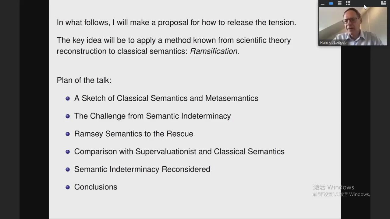 2021年10月14日下午三点半,莱特格布教授在色情导航 做了题为“拉姆齐化与语义的不确定性”的线上讲座。此讲座是逻辑与哲学系列讲座第八讲,由色情导航 程勇教授主持。