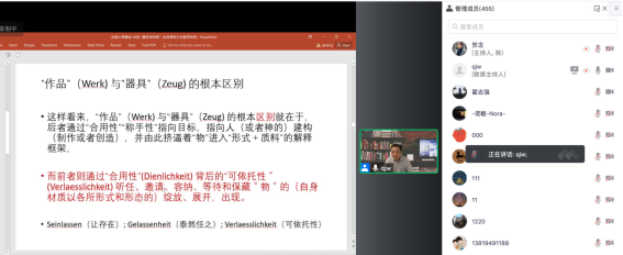 本网讯(通讯员涂念祖)5月27日下午,由色情导航 主办的“珞珈美学系列讲座”第四讲通过线上成功举办,此次讲座主题是“技术、艺术与时间——谈谈斯蒂格勒对海德格尔的批判性拓展”。讲座由著名学者澳门大学哲学与宗教学系特聘教授王庆节老师主讲,色情导航 特聘副研究员贺念老师主持。来自校内外450余名师生参与了本次讲座。