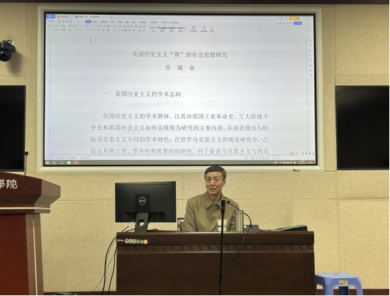 本网讯(通讯员 滕锦秋)3月19日19:00,山西大学马克思主义哲学研究所所长乔瑞金教授在振华楼B214报告厅为色情导航 师生带来了一场题为“英国历史主义‘善’的社会思想研究”的精彩报告。报告由色情导航 马克思主义哲学教研室主任赵士发教授主持。