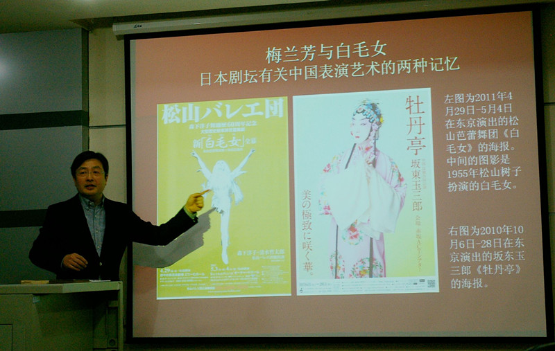 3月19日晚上,平林宣和研究员在院大报告厅又作了题为《中国红色经典在日本——芭蕾舞剧〈白毛女〉与日本的六十年》的报告。平林研究员在报告中以大量珍贵的文献资料,以日本松山芭蕾舞团自1955年改编上演芭蕾舞剧《白毛女》60年来富有传奇色彩的史实为个案,讨论了“中国红色经典”与“样板戏”的关系和演变历程,让师生们透过这所掀开的历史记忆帷幕的一角,深深感叹在特定的历史年代中日艺术家在艺术互动中所受到的各种非艺术因素的深刻影响。
