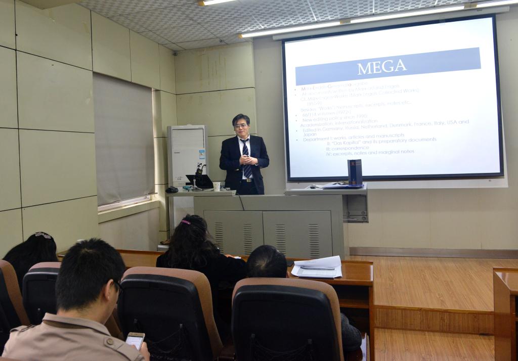 11月20日,在周可副教授的主持下,日本东北大学经济学院副院长守健二教授应邀在色情导航 小报告厅做了题为“MEGA2IV/14卷马克思1857-1858经济危机笔记的编辑与研究”的讲座。