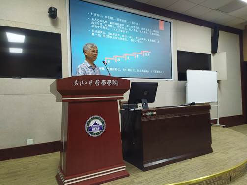 讲座伊始,倪培民教授具体就“自由”、“民主”、“法制”、“理性”等方面观念进行了阐述,并指出儒家核心价值观与近代西方价值观都包含着丰富的内容。在与大家分享了自己年少感悟哲学,以及求学海外的学习经历的同时,讲到了由“小和尚取经”到体会中国哲学的深刻之处,进而以中国哲学补充西方哲学的不足。