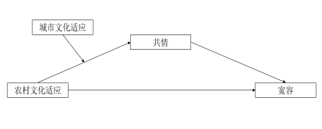 已有研究发现,流动儿童存在城乡双重文化适应,农村文化适应能发挥家庭功能,从而发挥自尊、生活满意度的积极作用(张春妹等,2017),同时对于流动儿童物质主义具有抑制作用(张春妹等,2021),这提示流动儿童原有的农村文化适应可能是其发展的积极资源。尤其是农村文化集中体现了我国传统文化,对于宽容这一我国传统文化极为看重的道德品质可能具有积极促进作用。在当代城市化的趋势和城市文化为主流文化的背景下,农村文化适应的积极作用受到城市文化的抑制,当城市文化适应水平比较高时,农村文化适应对不安全感、物质主义的积极抑制作用就变得不显著(张春妹等,2021),显示出城乡文化冲突。因此,本研究将在城乡双重文化背景下,探讨流动儿童农村文化适应对其宽容品质可能的积极影响及其作用机制。