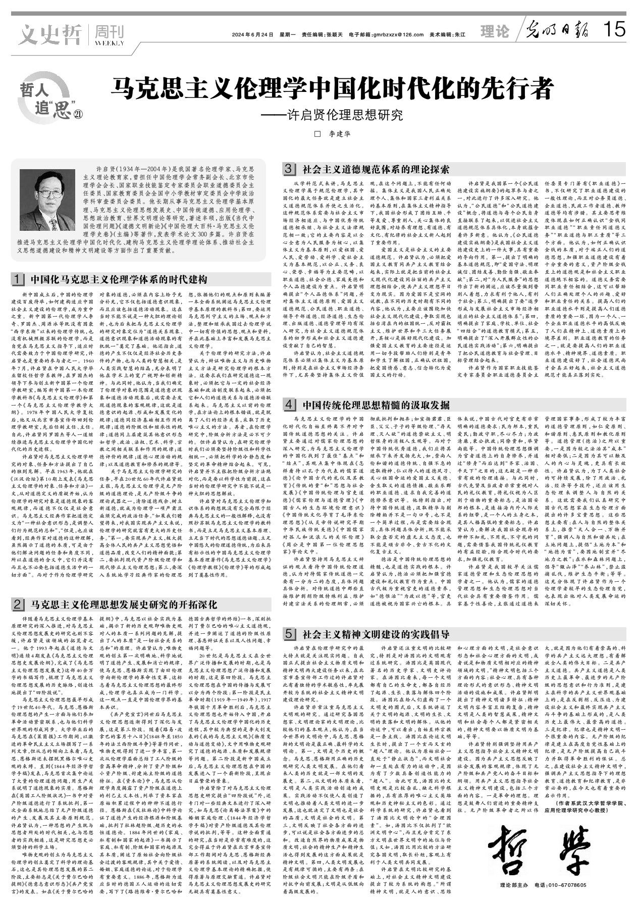 【光明日报】李建华:马克思主义伦理学中国化时代化的先行者——许启贤伦理思想研究