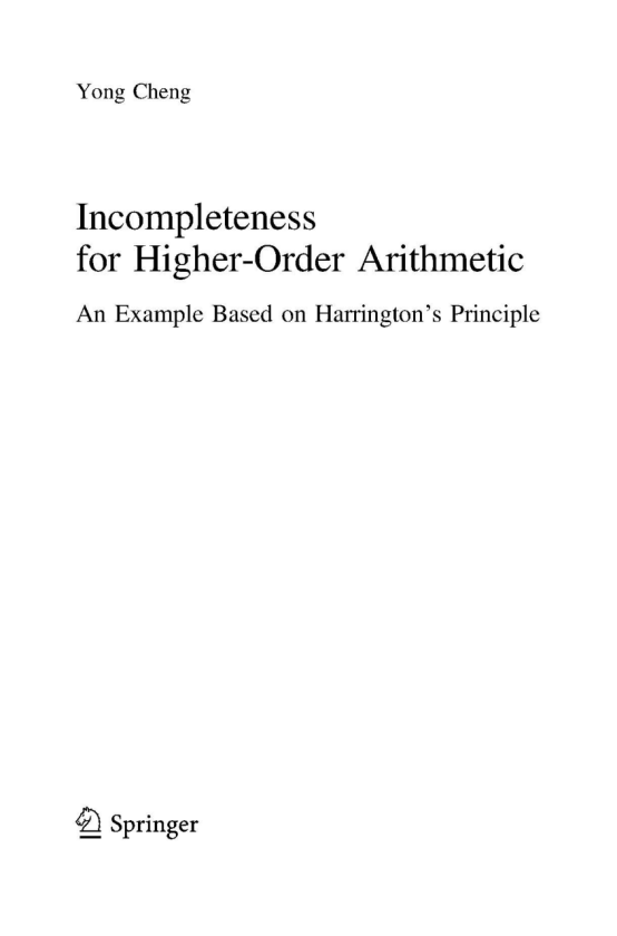 【德国施普林格出版公司】程勇著作:《Incompleteness for Higher-Order Arithmetic: An Example Based on Harrington's Principle》