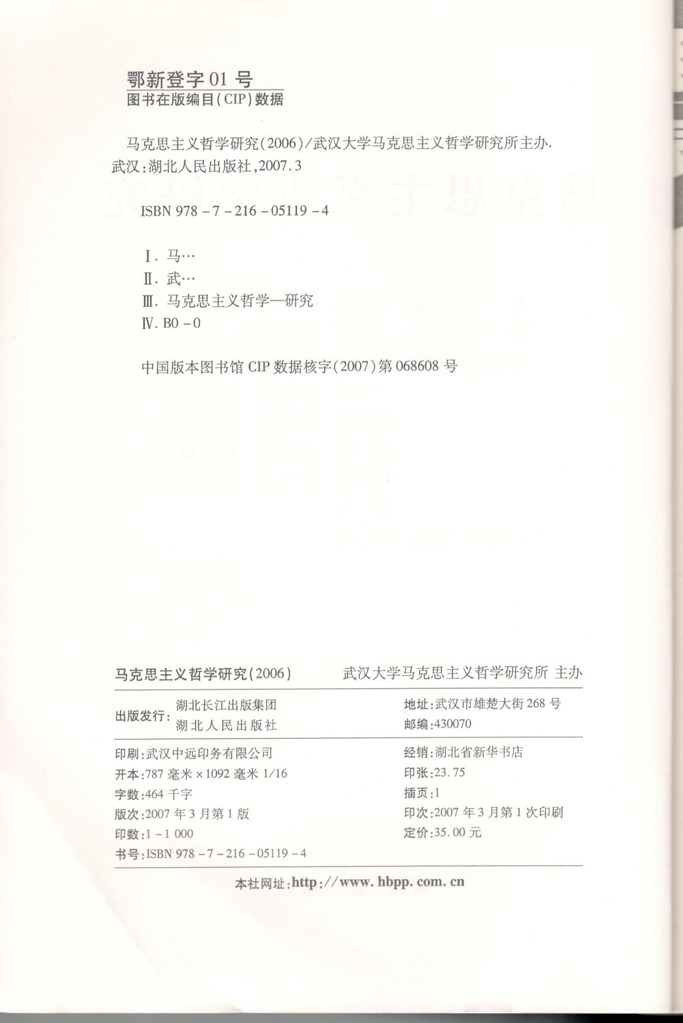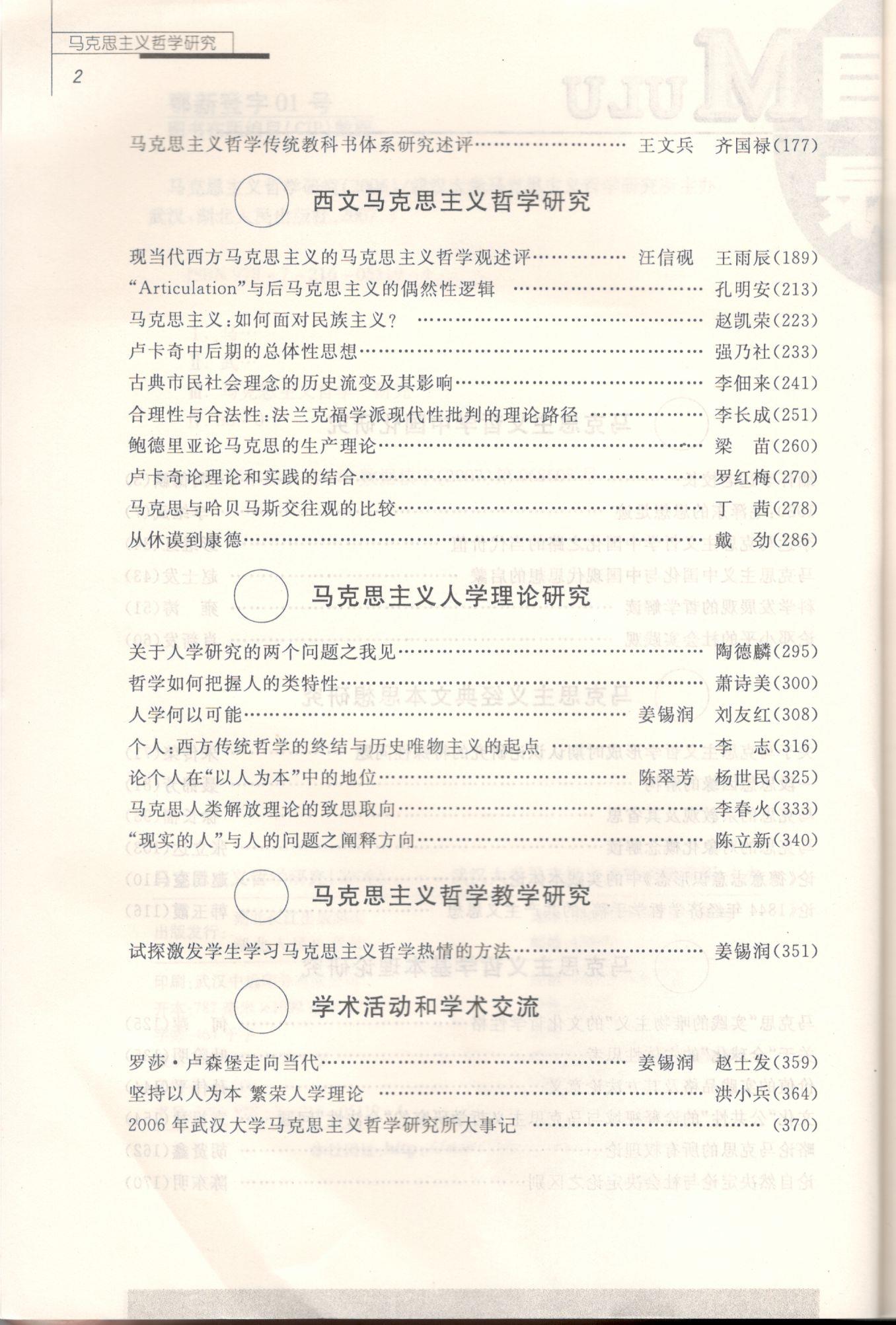 《马克思主义哲学研究》(2006年)