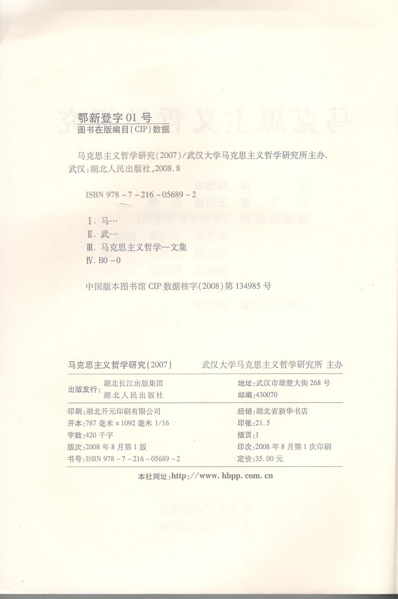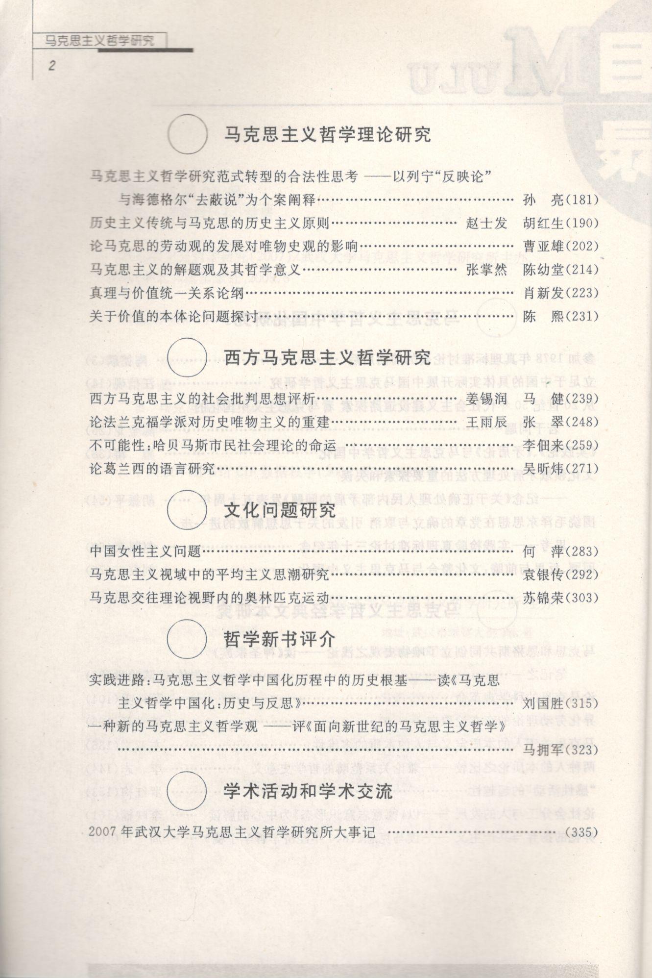 《马克思主义哲学研究》(2007年)