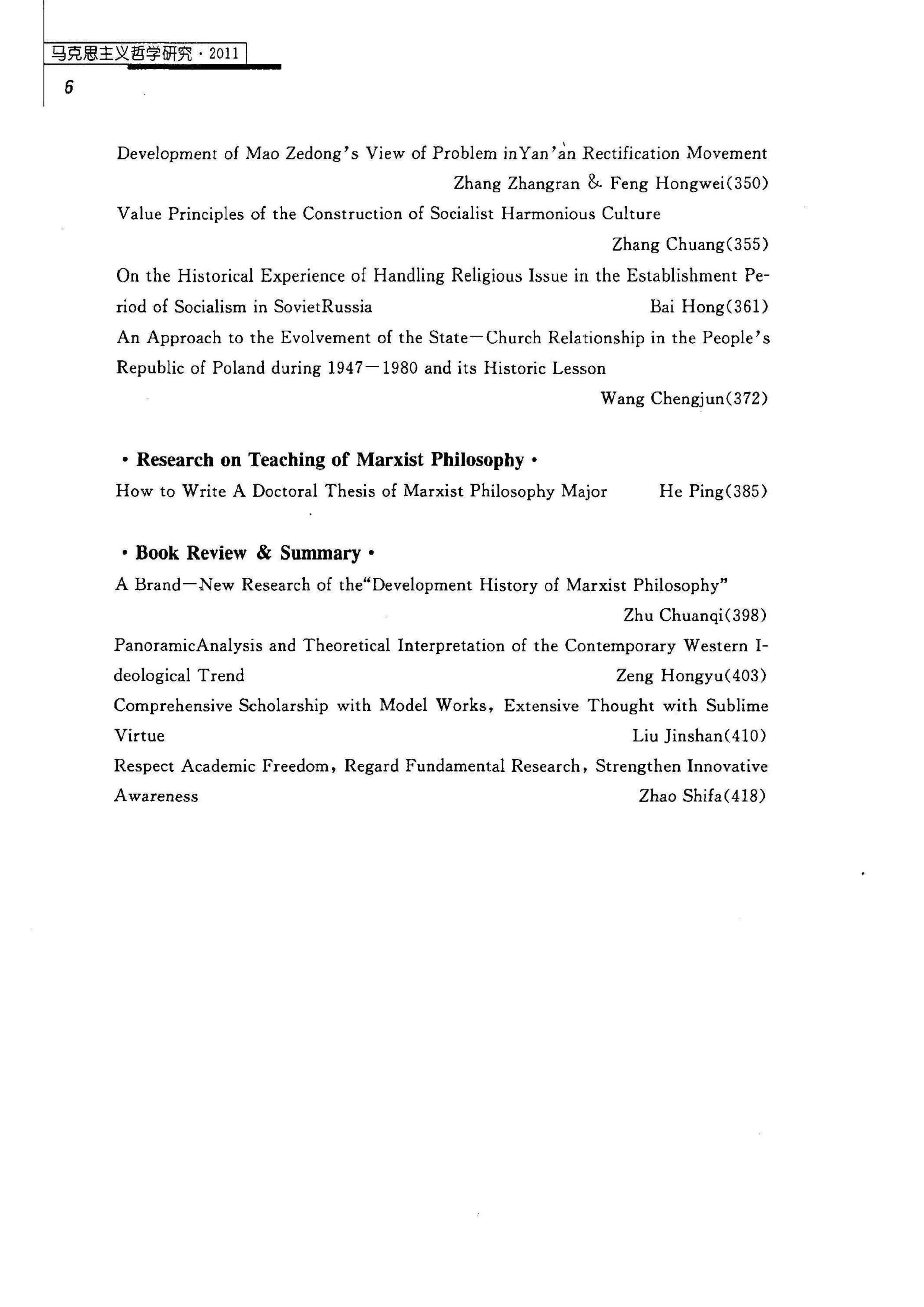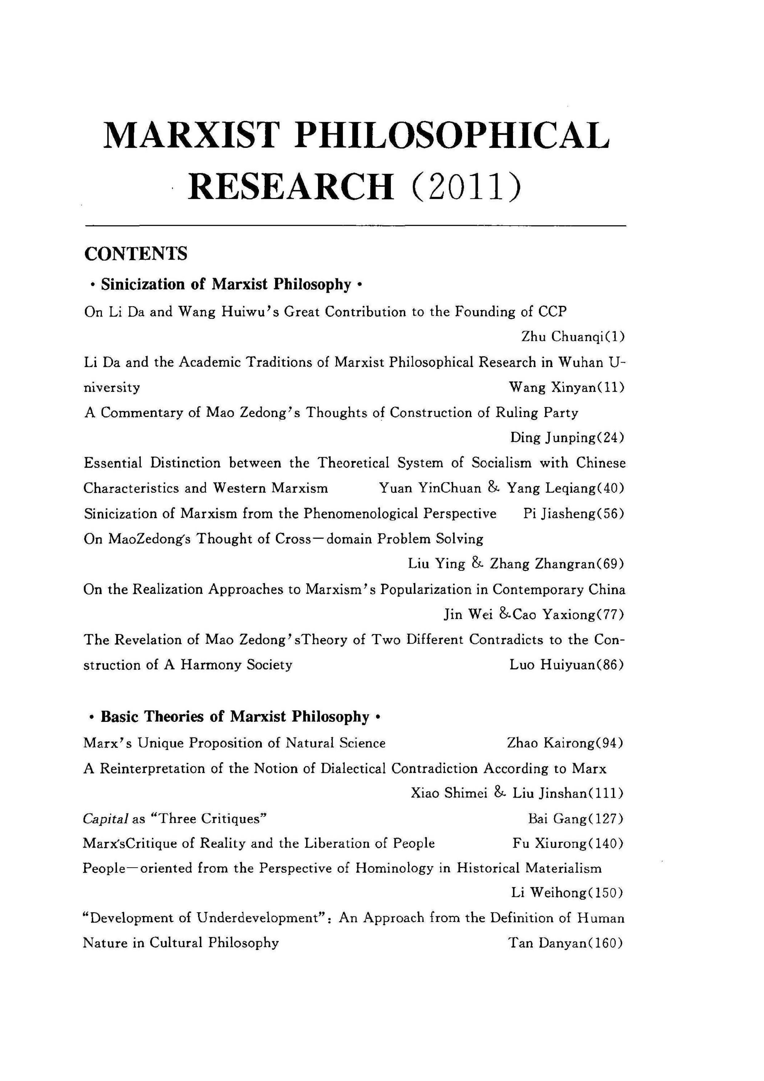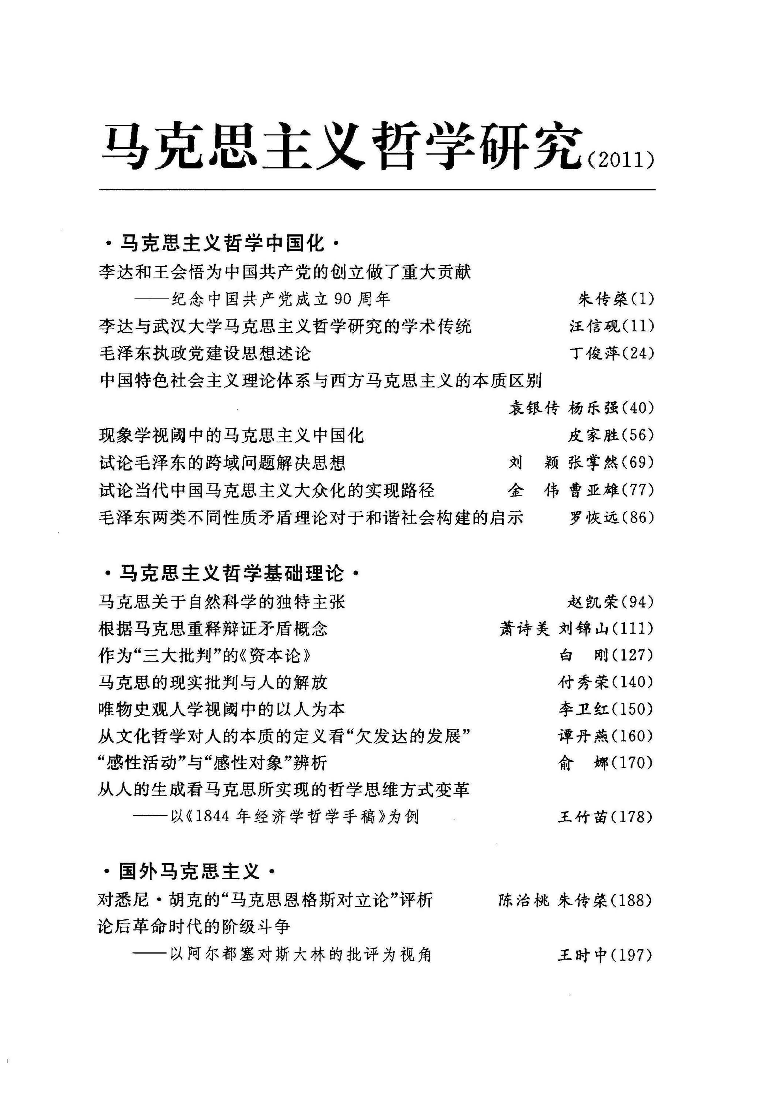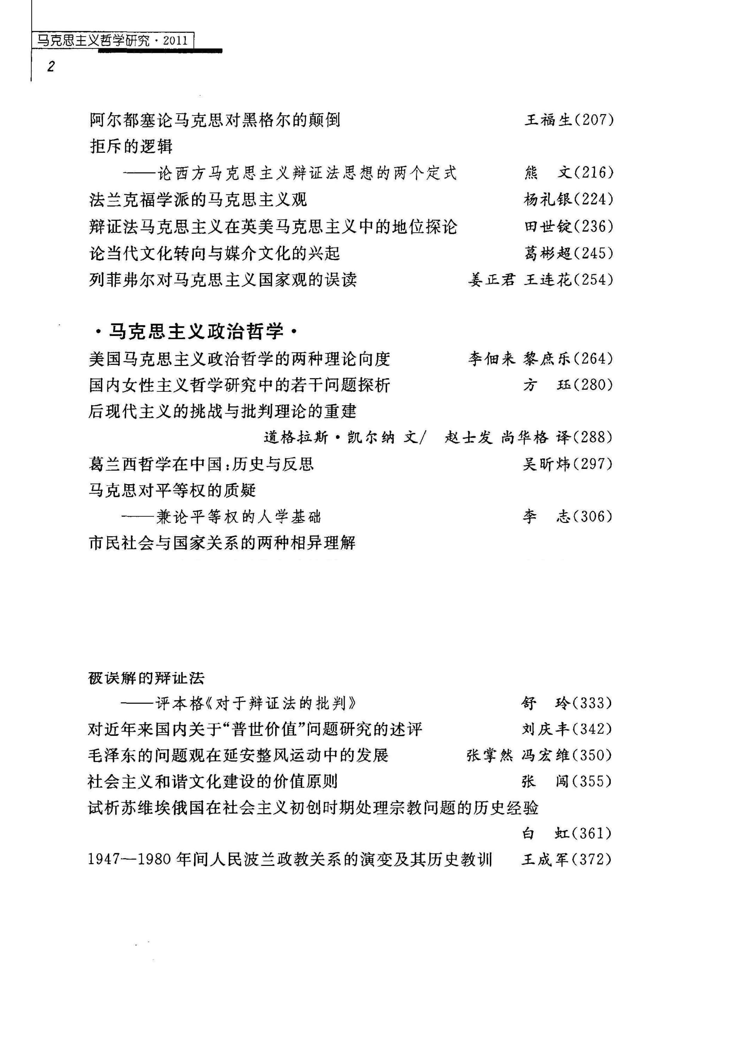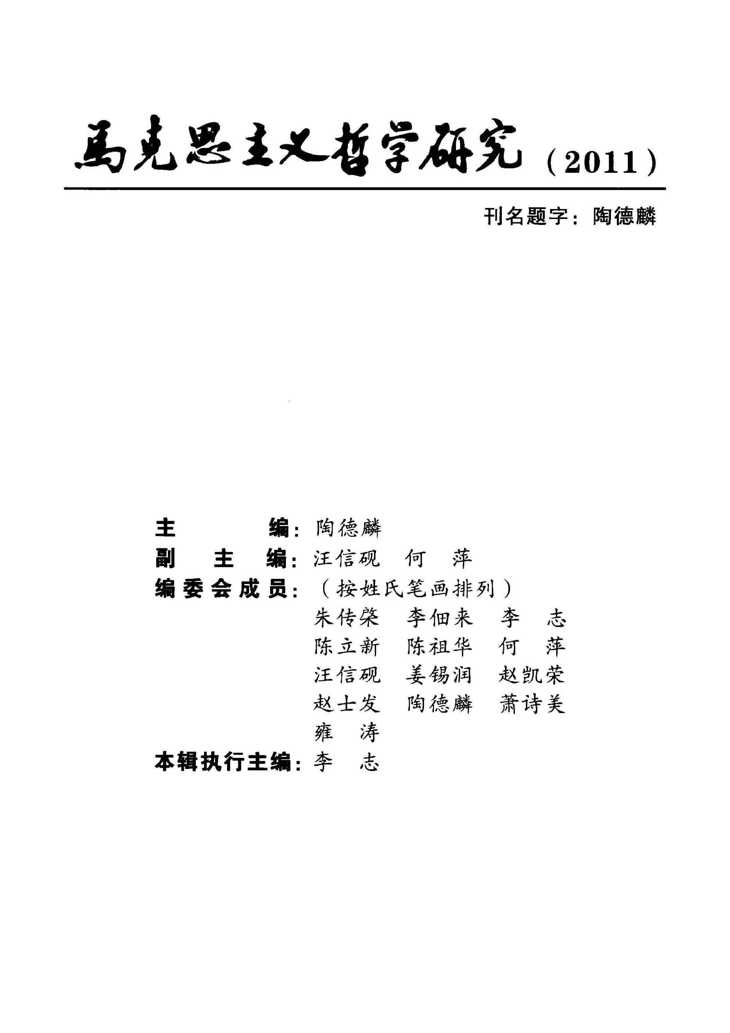 《马克思主义哲学研究》(2011年)