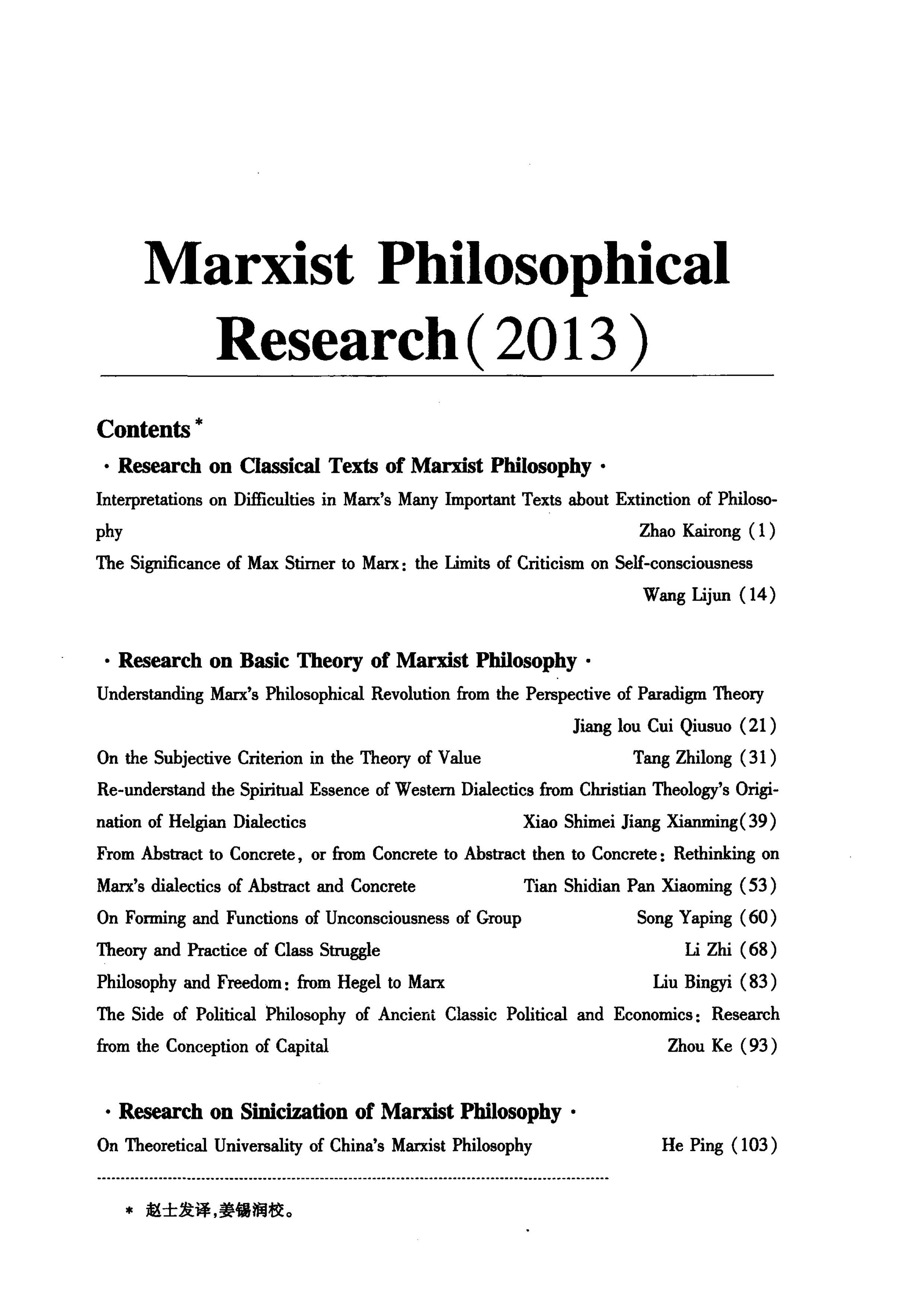 《马克思主义哲学研究》(2013年)