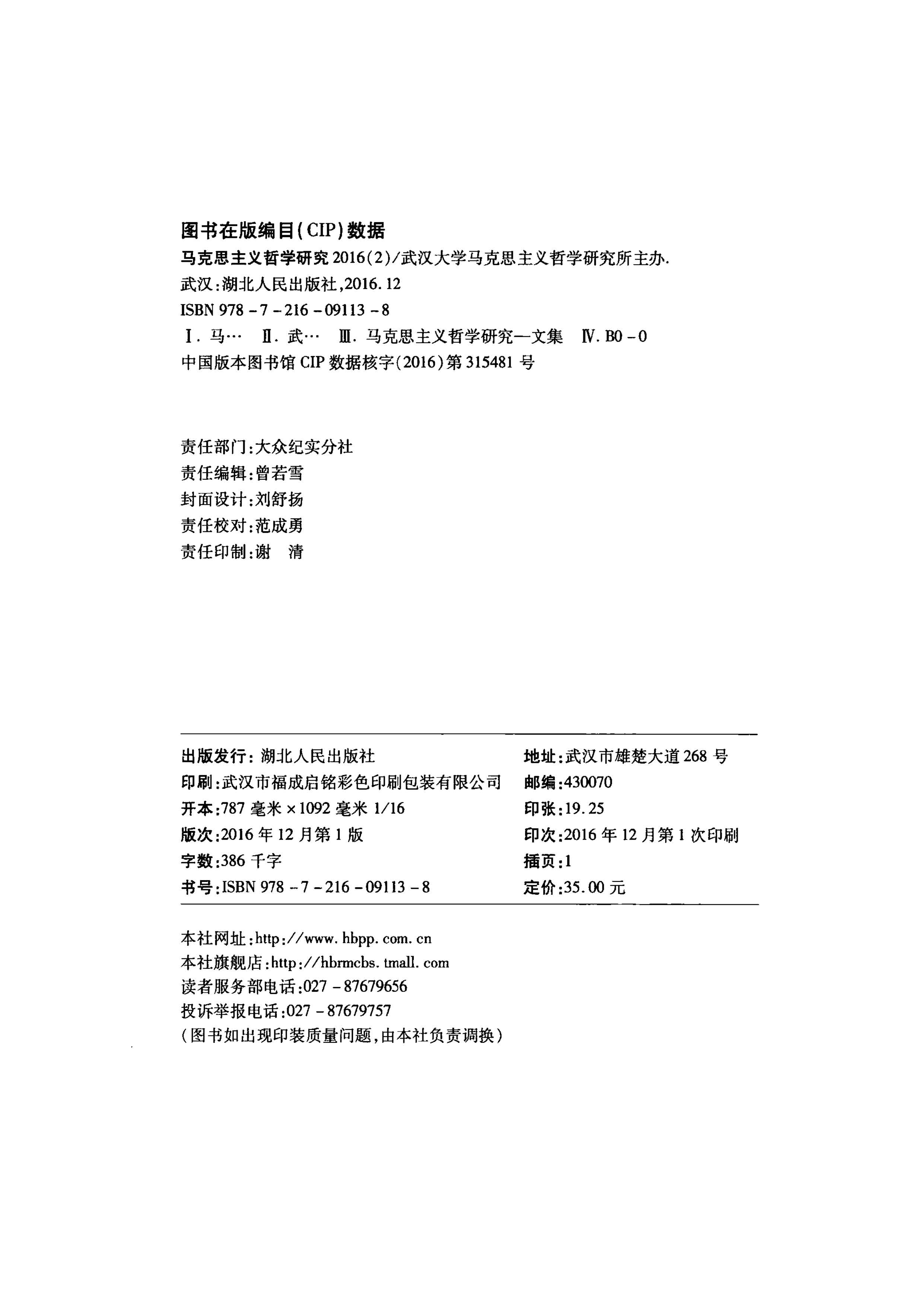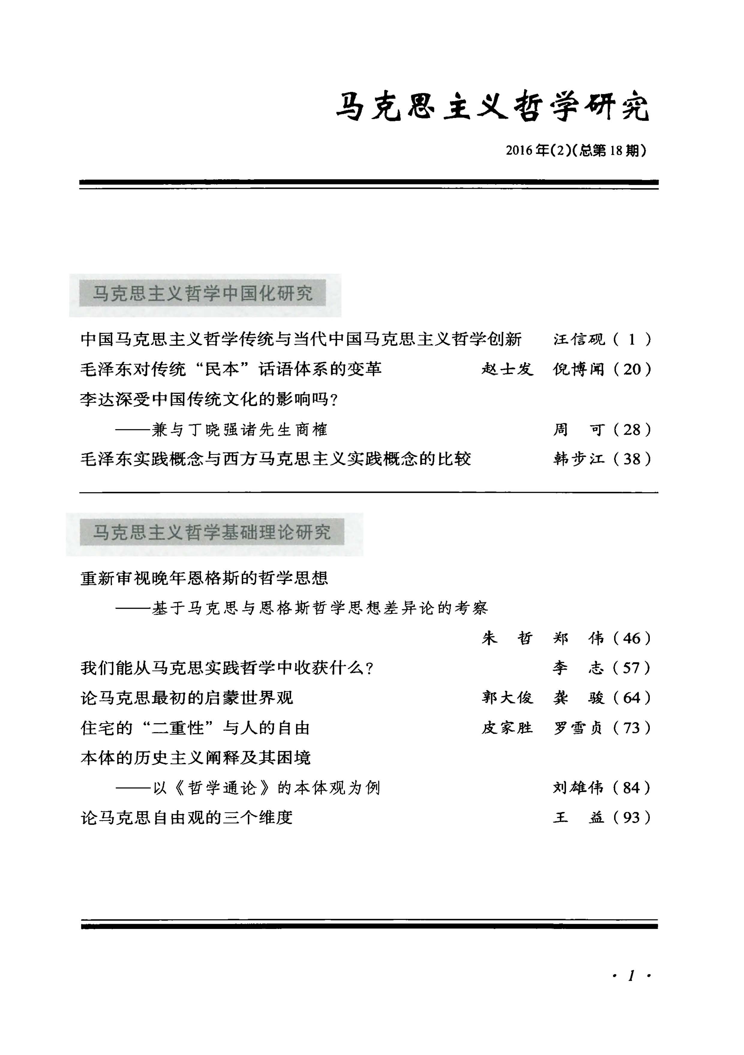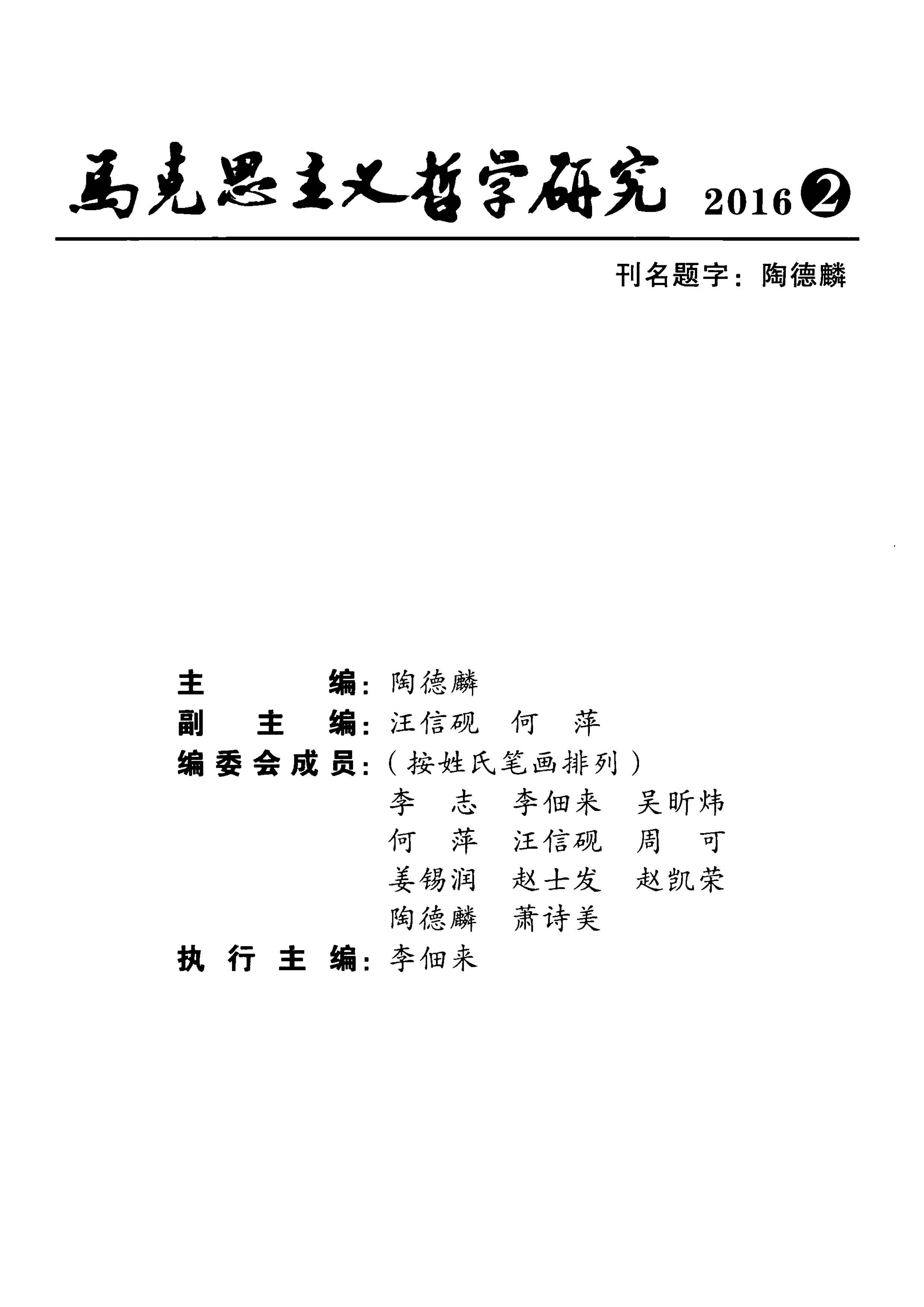 《马克思主义哲学研究》(2016年第2期)