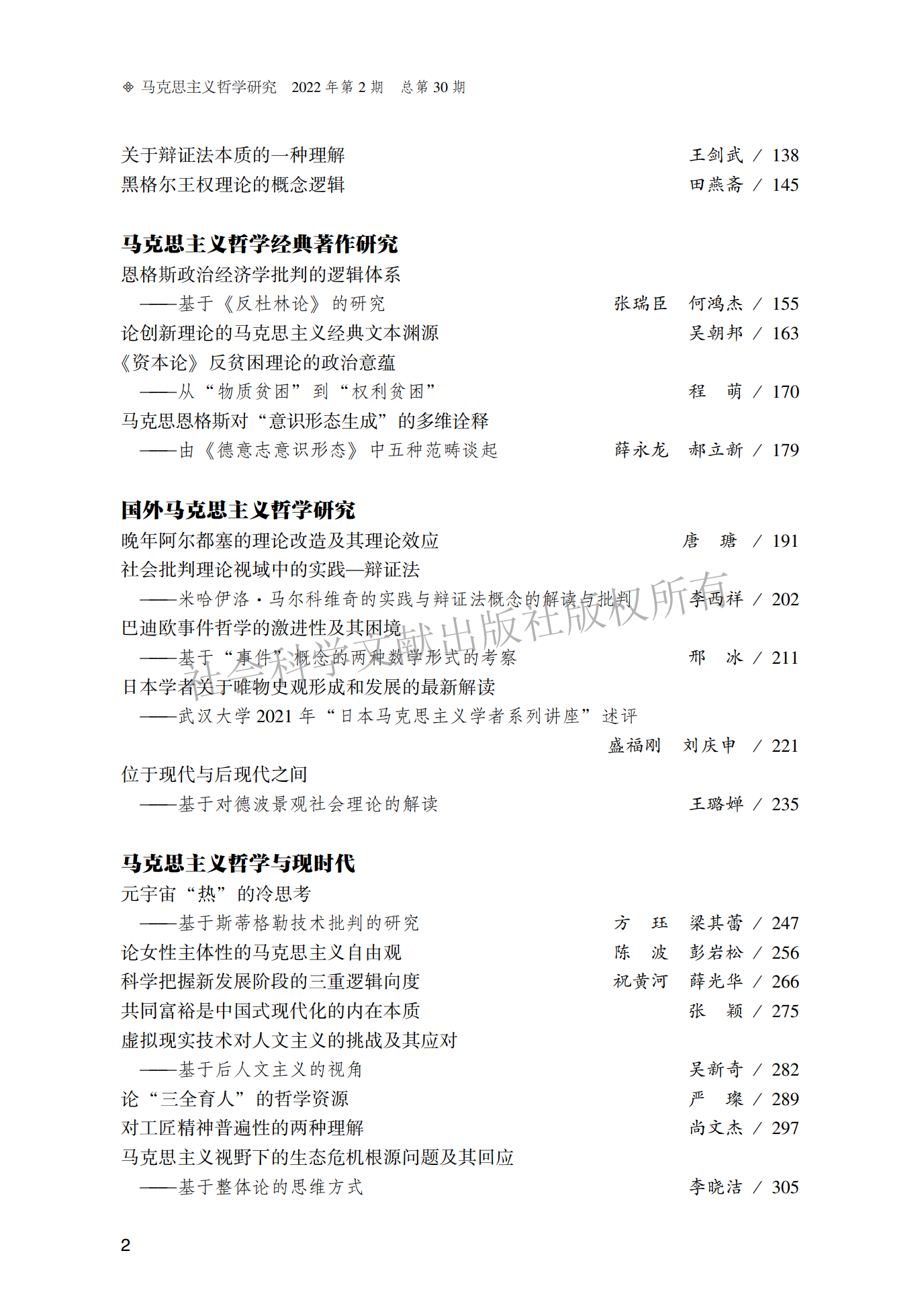 《马克思主义哲学研究》(2022年第2期)