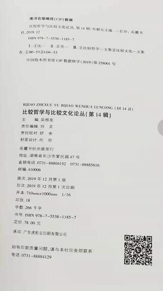 《比较哲学与比较文化论丛》 第14辑目录
