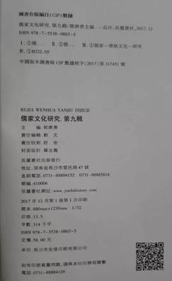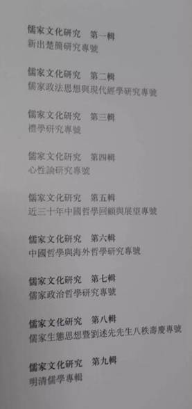 郭齊勇主編《儒家文化研究》(第一~九輯)目錄