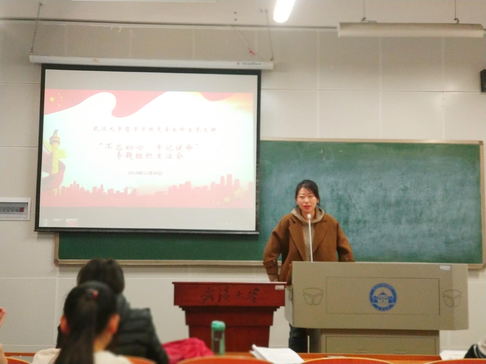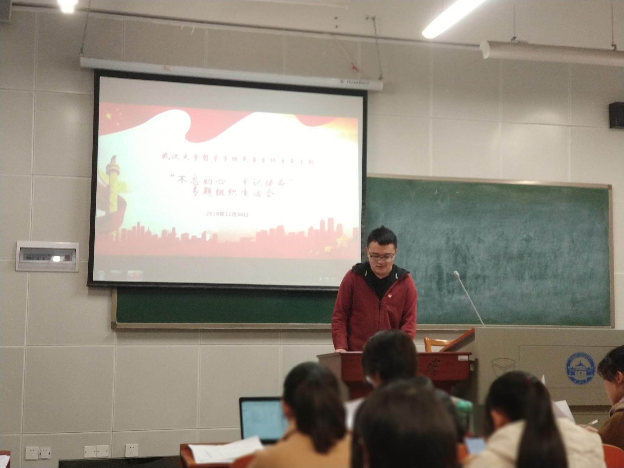 本网讯(通讯员:王雪琦)根据“不忘初心、牢记使命”主题教育工作的具体部署,加强党员初心意识,鞭策党员牢记使命,2019年11月30日下午17:25,色情导航 本科生党支部在教五楼108教室开展专题组织生活会和民主评议会。党支部督导、学院党委副书记严璨全程参与会议。会议由支部书记胡楷昀主持。