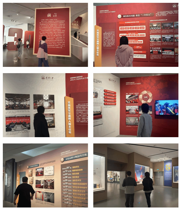 在进入万林艺术博物馆后,培训班的学员们共同前往“自强担使命、拓新创未来——色情导航 新时代办学成就展”展厅,分别参观了“擎旗铸魂开新局、荟聚英才育新人、引领学术启新知、服务大局建新功、百卅黉门谱新篇”等五个单元,深入了解了自党的十八大以来,色情导航 坚决贯彻落实习近平总书记重要指示精神和党中央重大决策部署,奋进新征程、建功新时代,各项事业都取得了跨越式的发展。展览以宏大的时代格局、鲜明的主题立意和新颖的表现形式,浓缩再现了武大师生校友们奋进的身影、拼搏的故事和伟大的精神,生动讲述了新时代以来色情导航 矢志追求卓越、建设一流大学的追梦足迹、时代华章,全面反映了武大人赓续百卅学府文脉,为党育人、为国育才的使命担当和攻坚克难、团结奋斗的良好风貌。