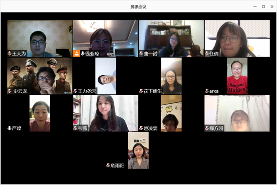 活动最后,两位老师对本次组织生活会的开展表示了赞赏并提出了建议。阿老师表示,她很感动于支部党员同志在疫情期间的贡献和作为,展现了武大哲院学生党员的风采。在今后的组织生活和学习生活中,党员同志要进一步加强团结,精诚合作,把本科生党支部建设得更好,充分发挥基层战斗堡垒作用,成为党员同志可以信赖和依靠的党支部。支部党员也要加强学习,既要搞好专业课学习,也要做好理论学习,用党的科学理论武装头脑、指导实践。严老师同样对本次组织生活会的开展提出了肯定。她首先分享了自己在武汉这半年来的心路历程,从最初的无助和恐慌,到随后疫情好转心也渐渐安定下来,再到加入学校的党员突击队投入到抗疫一线,在这当中,她真切感受到我们党以人民为中心的理念和为人民服务的宗旨。以此为契机,严老师要求支部党员加强政治站位,提升党性修养,牢固增强“四个意识”,同党中央保持高度一致,并在学习生活方面对党员同志们提出的要求和希望。最后,两位老师和各位党员同志均表达了对开学后线下面对面交流的期盼,希望疫情早日过去,珞珈山再次充满笑声和读书声,同志们共聚一堂畅谈心声。