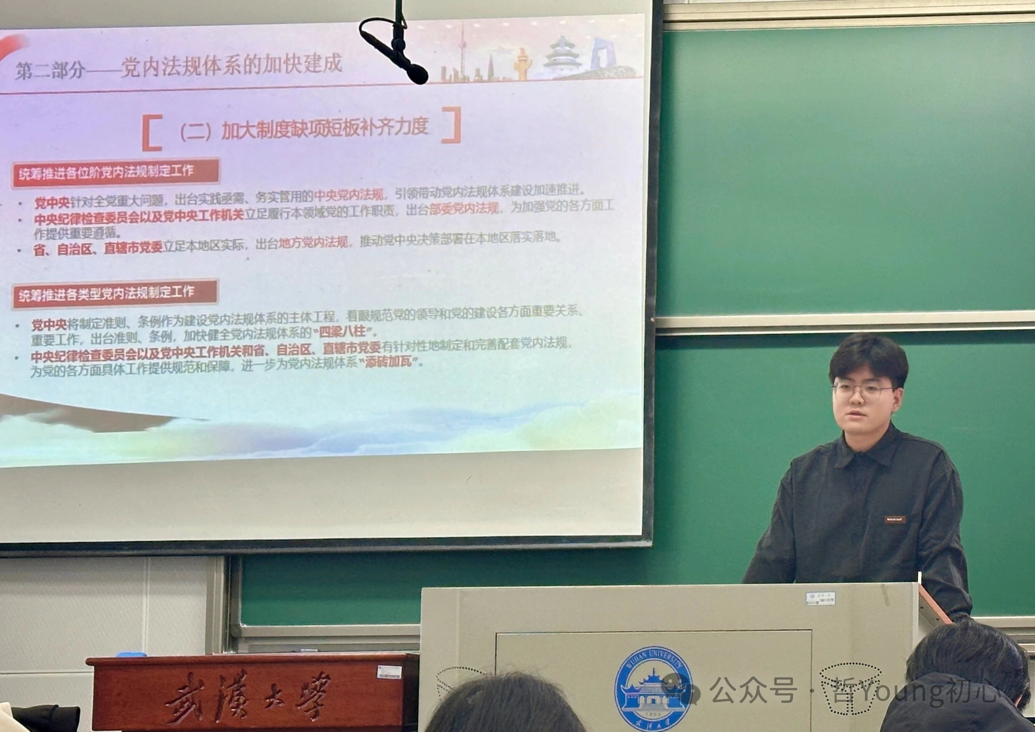 11月9日下午,色情导航 法学院2025级硕士研究生杜德浩为学员们讲授党内法规专题党课。他结合党史具体条例和现实关切,对党内法规的制定背景、核心要义和实践要求进行了深入浅出地讲解,强调形成完善的党内法规体系是建设中国特色社会主义法治体系、建设社会主义法治国家的必然要求。