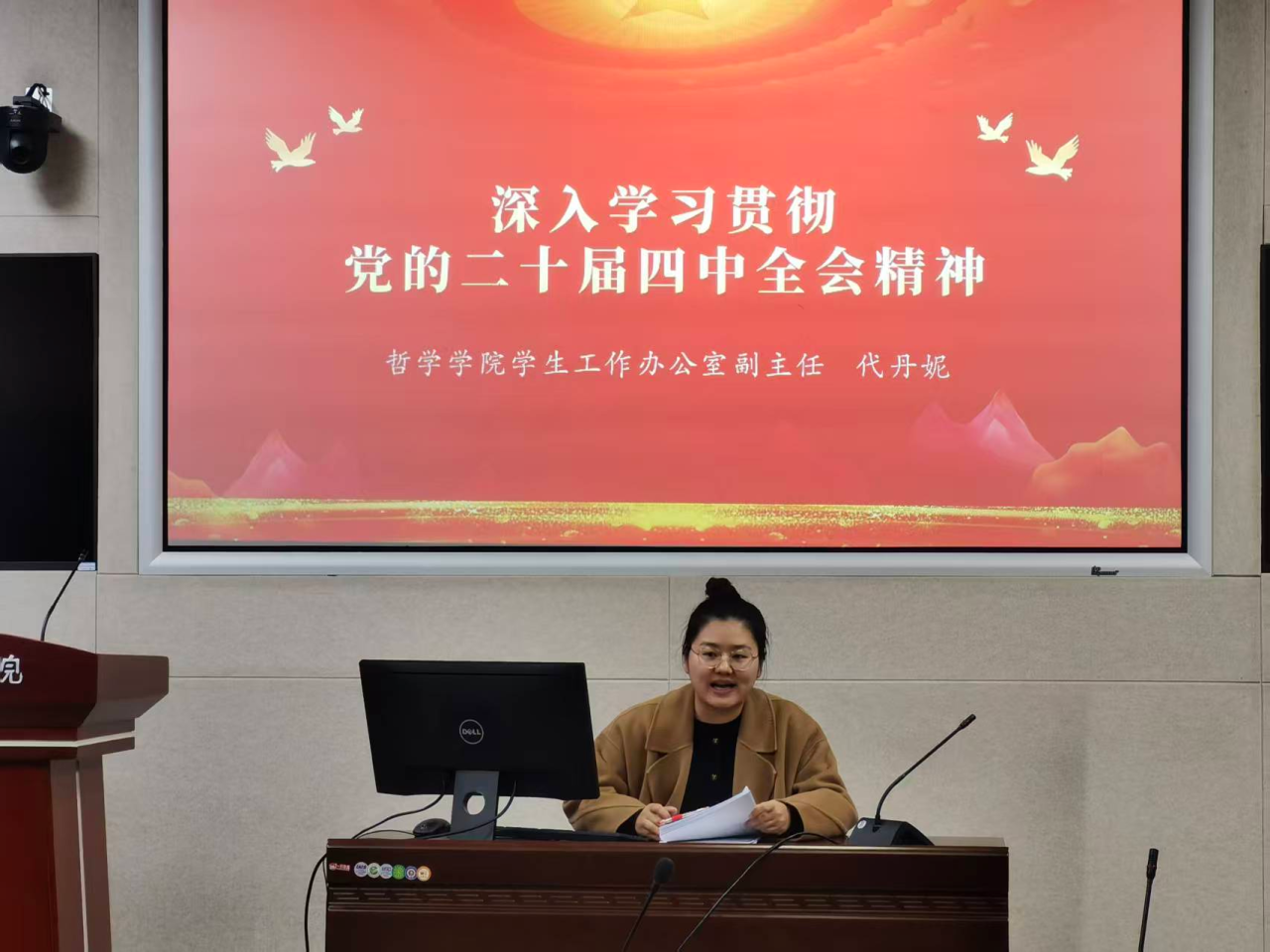 11月22日上午,培训班在色情导航 B214正式开班。色情导航 学生工作办公室副主任代丹妮作首场专题辅导,以《深入学习贯彻党的二十届四中全会精神》为题,系统解读了“十五五”规划建议的制定过程、核心要义和战略部署,帮助学员深刻把握新时代新征程党的使命任务和中国式现代化的实践要求。