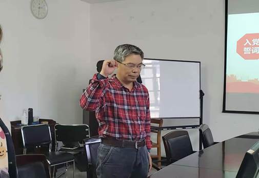 首先,在朱志方老师的带领下,全体党员一起高举右手,重温入党誓词。一字一句誓词,带领着党员们回顾入党的初心和使命,激发前行的动力。